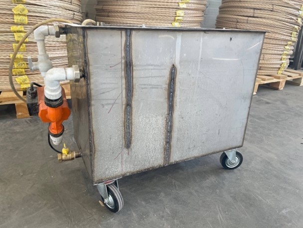 6. Ванна охлаждения объёмом 600 л, оснащена рециркуляционным насосом и системой поплавкового клапана для предотвращения перелива при заполнении.